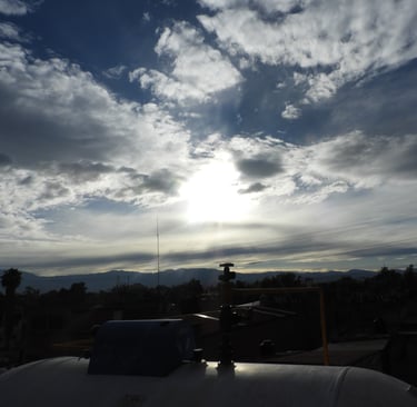 12 de enero 2024: Tomé algunas fotos en la azotea de mi casa. Fue una experiencia interesante porque sé que estoy rodeada de edificios bajos, de jaulas para tender ropa, de tanques de gas y demás objetos típicos de las azoteas. Por primera vez, después de las descripciones de Irlanda, me enteré que el piso de mi azotea es rojo y la pared de mi cuarto de servicio también. Al querer tomar el horizonte desde la orilla del balcón, sabía que probablemente saldrían…