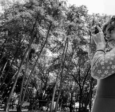 Agosto 2024 : Sesión sin Irlanda. Visita a Chapultepec con mi amiga Debbie. Caminando por el bosque encontré algunos árboles interesantes, a criterio de Debbie. Con ella comparto mucho el gusto por los paseos en la naturaleza, y cada que podemos, salimos a parques o recorridos en la naturaleza, aunque sea en la ciudad. Debbie es amiga de gustos visuales bastante paralelos a los míos, ya que la conocí cuando aún veía, y puedo constatar que lo que le gusta a ella...