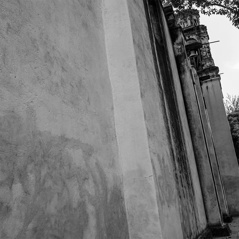 Domingo 5 de mayo 2024 : Plaza de la conchita, tarde nublada, tarde de luz más opaca que la de la sesión anterior. Primero comimos y luego caminamos a la plaza de la Conchita y nos sentamos frente a una glorietita, frente a una cruz, y el saber que era cruz de piedra me puso de inmediato en la imaginación algo ancestral y frío, fresco. Quise imaginar su forma, el color, y le pedí a Irlanda que me acomodara de tal forma que pudiera captar en mi primera foto lo que deseaba yo de esa imagen. Visualicé claramente los colores, los tonos verdes oscuros de las hojas contrastando con el cielo poco nublado, contrastando con lo gris piedra de la cruz. No quería que ésta se mostrara exactamente como una cruz, sino como un héroe de brazos abiertos, visto desde abajo. Había un entorno de arbustos y gente sentada en las bancas, rodeando el lugar. Quería tomar la cruz desde abajo, en diagonal, quería que no saliera de frente, ni proporcional, quería que fuera casi como algo que apunta al cielo, monumental. Luego me pasé a la fachada de la iglesia. Aunque había estado en otras ocasiones ahí, cuando veía, no la recordaba. Quise tocar la textura de sus puertas viejas de madera, con tantos relieves y adornos. Estaba envejecida, astillosa. Irlanda me dijo que la piedra de los muros estaba pintada de amarillo claro. La imaginé de ese amarillo sucio de edificio viejo, pintado en mil capas, y sí, toda esa plaza la imagino muy vieja, con muchas capas de remodelado, con una historia ancestral. Me describió la altura del edificio y recordé otras iglesias que había podido ver con mis ojos, parada frente a su puerta, como la enorme iglesia de Koln en Alemania, altísima. Traté de dimensionar la altura de esta iglesia de la misma forma, y por supuesto, la sensación fue muy distinta. Me describió que hasta arriba estaba el campanario. La iglesia me costó. Quise poner sus colores en mi cabeza contrastando lo amarillo con el gris del cielo y con las copas de los altos árboles que estaban alrededor. Quise captar esa imagen que había visualizado antes: la iglesia vista desde abajo. Me coloqué muy cerca de sus muros y apunté hacia arriba, hacia las torres con campanas. Desde un principio, sentí la cámara algo pesada e incómoda para poder lograr, primero el enfoque y luego disparar. La sentía muy inestable en mis manos y cualquier movimiento mío la tambaleaba a la hora de disparar; pero me gustó que tenía claro lo que quería lograr, aunque no lo haya logrado del todo. Hubo muchos intentos fallidos en donde salían en la imagen cosas no deseadas como gente que pasaba, o coches, o unos banderines que colgaban de los árboles. A cada imagen obtenida salían más detalles que no había tomado en cuenta. Finalmente acabé agotada por no haber logrado lo que pretendía, pero me gustó mucho enterarme de todo lo que tenía que tomar en cuenta para que en la foto saliera la imagen tan limpia como la imaginaba. Resumiendo, ese día, la imagen que quería de la cruz se creó muy fácil como para quererla captar, porque tenía clarísima mi intención, un poco parecido a la sensación que tuve cuando hice un ejercicio de imaginación en el taller de creación musical con Julio Estrada, en donde, después de haber visualizado una ensoñación y haberla descrito en voz alta, construí con absoluta claridad la imagen interna de lo que quería. Todo fluyó de inmediato en la creación gracias a que las sensaciones previas fueron muy integrales: la temperatura, la visualización de los colores, la forma. Creo que cuando se siente globalmente algo, es más sólido y contundente. Para poder crear algo, ayuda tener absoluta claridad sobre lo que se pretende, visto desde todos los ángulos, no sólo desde el visual. Por eso, estas prácticas están siendo importantes, como para concientizar de la complitud de sensaciones que hacen falta para crear algo contundente y profundo. La imagen de la iglesia no fue tan fácil porque había demasiados factores, detalles que no podía controlar y un poco por lo técnico, el peso de la cámara, el no percibir el zumbido del enfoque, la hipersensibilidad del botón, y un poco el cansancio y el fastidio de no lograr lo que deseaba.