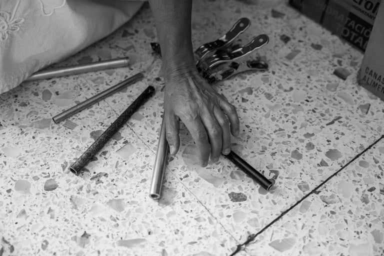 Me enseñó un instrumento que construyó con sus bastones hace tiempo y lo nombró Blind Chime. Y me enseñó su taller donde tiene sus materiales y su caminadora para hacer ejercicio. Esta vez la clase terminó comiendo en un lugar de mariscos.