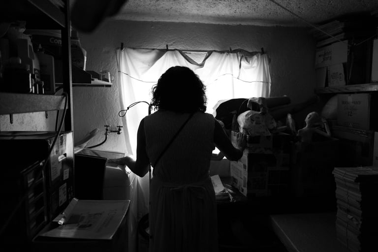 Maricarmen me contó que en algún momento participó en un taller donde la imagen la hacían a través del texto; es decir que su álbum fotográfico lo materializó en texto. Así que me pidió grabar en audio la descripción de las imágenes pero mi meta será además de eso acompañar la imagen de un texto lo más descriptivo para ella. Entre la plática me dio curiosidad entender qué «ve» yo pensaba que era un negro profundo pero me llevé la gran sorpresa de que percibe manchas y explosiones que se mueven pero no es todo el tiempo.