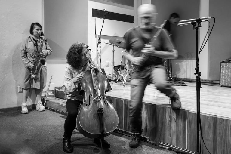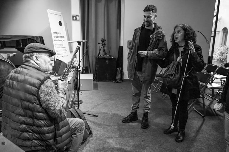 Jueves 27 de junio 2024. Dentro del XXXVII Coloquio Internacional: «Máquina productora de silencio. La improvisación en y más allá de la música y las artes» organizado por 17, Instituto de Estudios Críticos y la Fonoteca Nacional de México se llevó a cabo un Festival de Improvisación en el que participó Maricarmen. Fue una tarde lluviosa pero eso no impidió que hubiera público escuchando esta interesante propuesta de Improvisación en relevos. Dentro de la Fonoteca se usaron tres recintos para dar oportunidad a que los músicos de manera libre pudieran rotarse y ocupar un lugar para la improvisación. A Maricarmen le pusieron dos asistentes, uno para ayudarla a trasladarla y otra persona para cargar su chelo. El evento duró de 16:00 a 18:00 y participaron los siguientes músicos: Santiago Botero, Juanita Delgado (Bogotá), Franco Pellini, Gonzalo Biffarella (Córdoba, Argentina), Lewis Melville, Jashen Edwards (Guelph), Carlos Alegre, Remi Álvarez, Gibrán Andrade, Vania Fortuna, María Goded, Maricarmen Graue, Carlos Grecco, Andrés Guadarrama, Emiliano Cruz, Ángel Florido, Rossana Lara, Ricardo Lomnitz Soto, Eli Piña, Roberto Tercero, Ollin Vázquez, Darío Bernal-Villegas, Fernando Vigueras, (México).