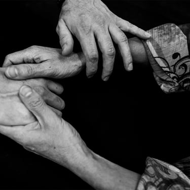 Finalmente en las despedidas yo quería un retrato de los presentadores con Maricarmen. Sabiendo que para Maricarmen sus manos son sus ojos, les pedí si podían conocerse a través del tacto y ellos accedieron a dejarse tocar, así que pude contemplar la emoción que a Maricarmen le despierta tocar las manos y comentó cosas como el tamaño, la forma, la suavidad. Al final disfrutamos de un pay de limón. Tomé camino regreso a casa y ellos se quedaron para festejar.