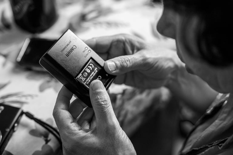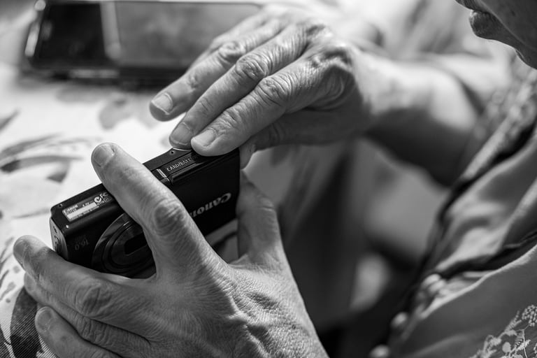 Después de un rato de plática, me enseñó una cámara que le prestó su amigo Marco y nos pusimos a explorarla, a sentirla, aprender a meter y sacar la pila, la tarjeta de memoria, probar el cargador y empezar a utilizarla. Ubicó donde estaban los botones principales y para qué servía cada uno. Grabó en su teléfono la guía para ubicarse en caso de volver a necesitarla. Esta cámara la sintió más cómoda por el tamaño y lo más importante era que podría tenerla todo el tiempo con ella y experimentar; estaba convencida que ya no tenía que sentir que debería tener el control absoluto y que lo que tomara sin importar cómo inevitablemente acabaría siendo una imagen con sentido en su vida por el simple hecho de decidir tomarla. Además de esto su amigo le bajó una aplicación de inteligencia artificial que le describe las imágenes, lo cual la emociona en gran manera porque ya no depende de alguien para la descripción y la aplicación lo hace bastante certera, aunque ella diría «un poco fría».
