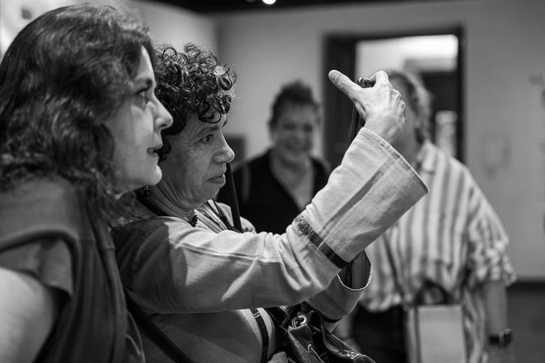 A Maricarmen le llamó la atención unas fotografías de aviones, unos negativos pintados a mano y el último vía crucis. A ella le dejaron tomar las fotografías con su cámara con la intención de que en su casa la IA pudiera describirlas después. Al finalizar el recorrido comentamos y opinaron sobre la exposición lo que detonó hablar de muchas cosas incluso personales. La plática se extendió en un restaurante y Maricarmen y yo nos tuvimos que retirar antes, nos regresamos en metro; ella se quedó en la estación Viaducto y yo bajé en General Anaya.