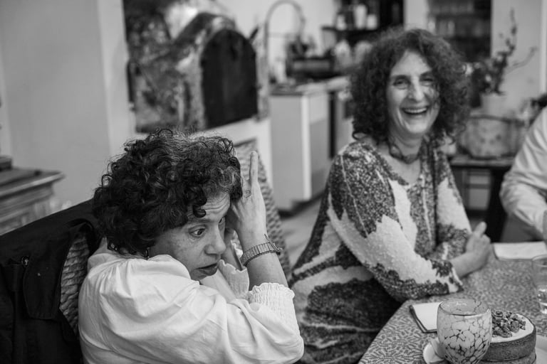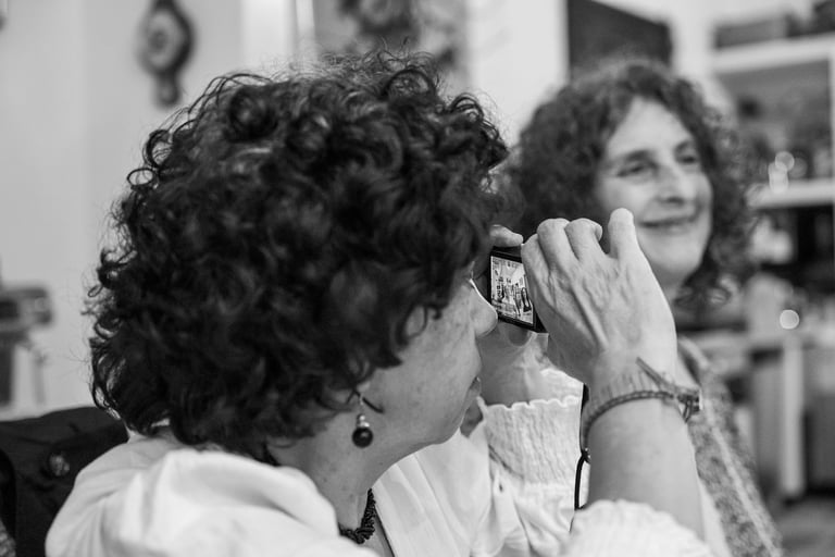 Jueves 1 de agosto 2024. Hoy fue el cumpleaños de Maricarmen y su festejo fue en compañía de sus amigos de la infancia, un músico y yo. Todos recordaban la niñez, Maricarmen me posó junto a Reina para imitar una imagen que tiene cuando eran niñas. Las pláticas también fueron de pintura, comida, fotografía y de vez en cuando Maricarmen sacaba su cámara y la disparaba pidiendo que a quien le tomara la foto hablará para poder dirigir la cámara hacia su voz. Esperamos a que llegara el último invitado, quien le regaló a Maricarmen unos tenis para sus maratones, para empezar a cenar. Durante la cena Maricarmen seguía tomando fotos y les presumió su inteligencia artificial.
