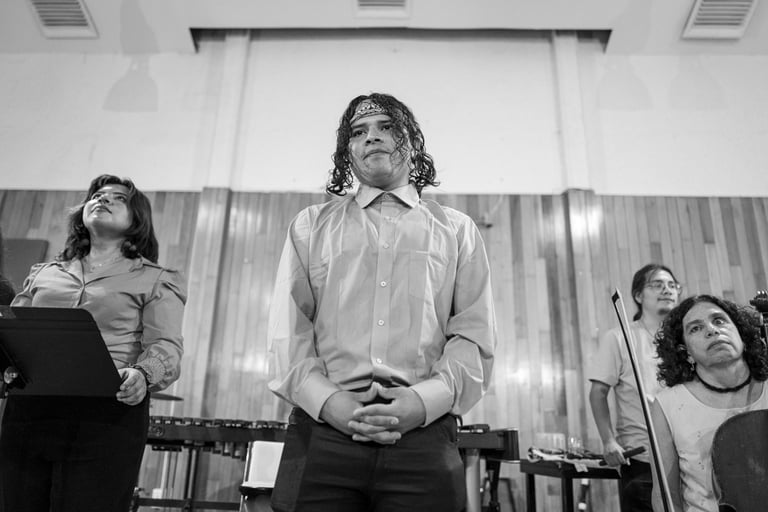 Domingo 19 de mayo 2024. Esta vez el encuentro fue durante un ensayo para un futuro evento de Garra Azteca. Conocí a Víctor (pianista) y Dinorah (cantante). Con Maricarmen no hay descansos, ni pausas; venía llegando de Tlayacapan donde participó en un proyecto cuyo propósito era musicalizar películas mudas. A Maricarmen le pareció interesante que una ciega musicalizara películas mudas. La pregunta para mí era ¿cómo? y me dijo que alguien...