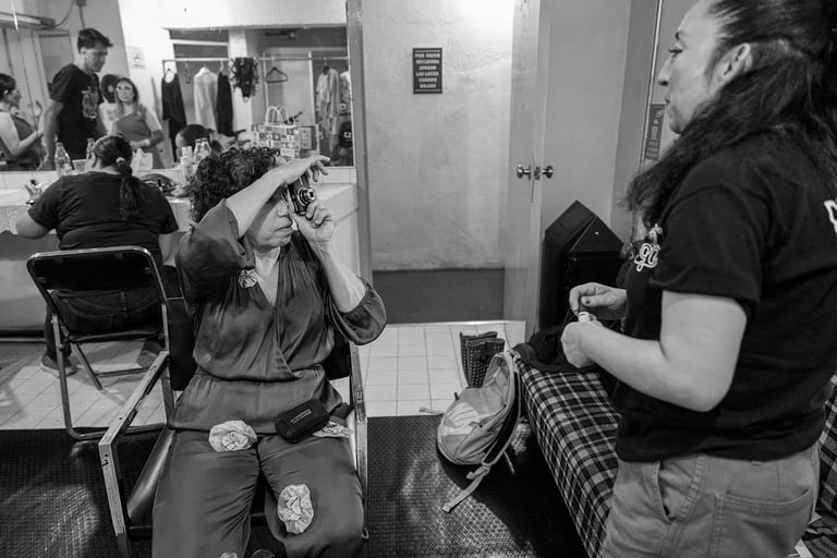 Domingo 21 de julio 2024. Histérica es una obra de teatro escrita por Érika Bernal donde participa Maricarmen. En esta sesión se encuentran ensayando en un espacio que les presta la Escuela de iniciación artística no 4., podemos ver solo parte del elenco. Además de los actores se encontraba el equipo, entre ellos el padre de Érika, que les prepara el piso del escenario con una lona que tiene marcas físicas para...
