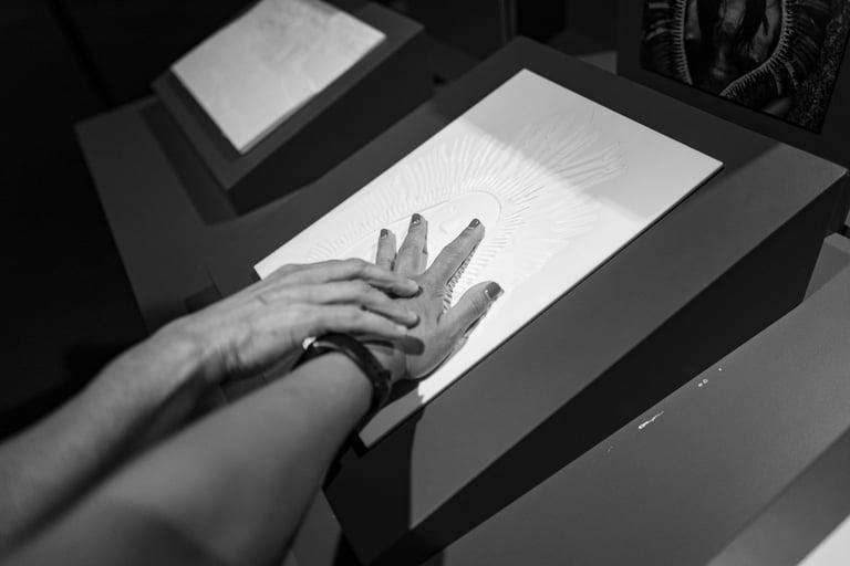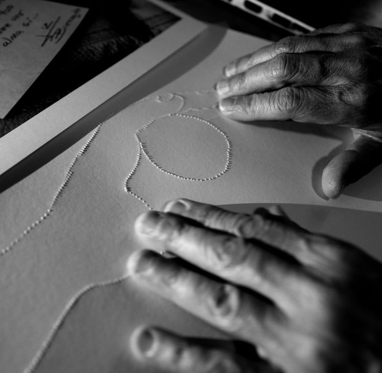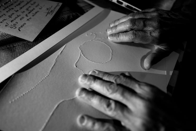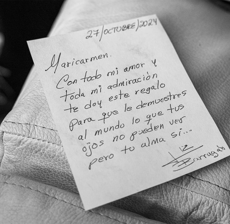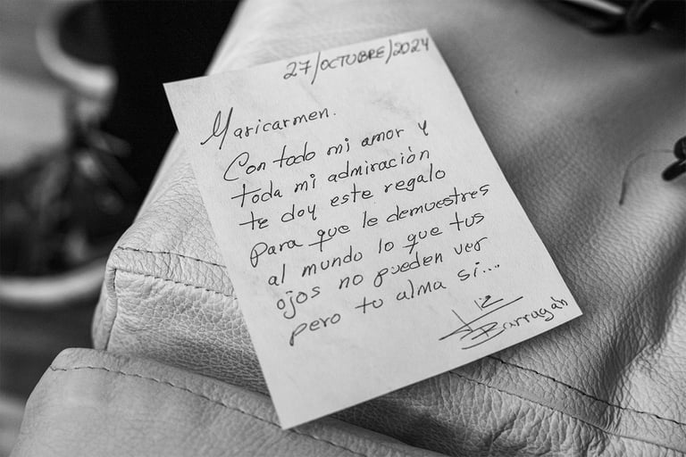 Domingo 27 de octubre 2024. Hoy sería un día movidito, empezamos el día en su casa, la noche anterior fui a imprimir las fotografías que Maricarmen había hecho hasta el momento para que ella las tuviera impresas y supiera cuántas llevaba. Nos dimos cuenta que en su selección ya iban cuarenta y nueve fotografías, estaban distribuidas en hojas doblecarta, quería saber si al tacto ella podía sentir el relieve de la impresión y solamente en algunas lo percibía...