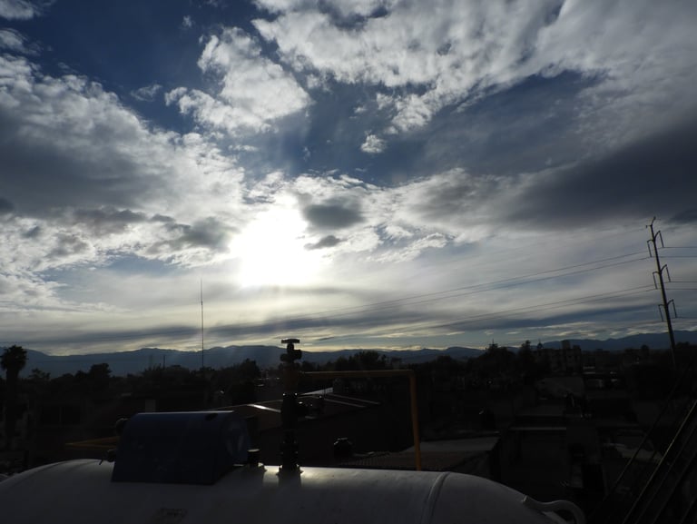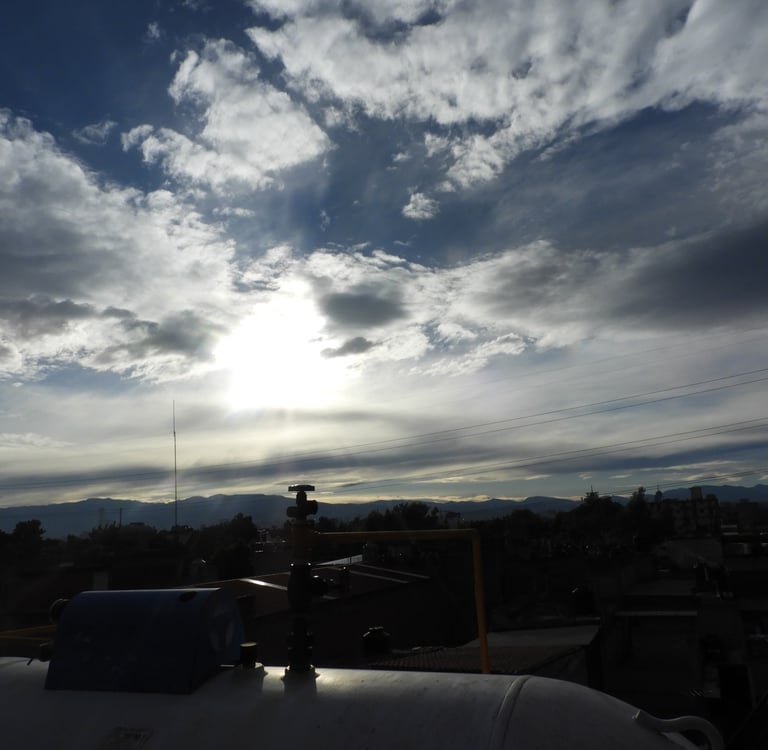 12 de enero 2024: Tomé algunas fotos en la azotea de mi casa. Fue una experiencia interesante porque sé que estoy rodeada de edificios bajos, de jaulas para tender ropa, de tanques de gas y demás objetos típicos de las azoteas. Por primera vez, después de las descripciones de Irlanda, me enteré que el piso de mi azotea es rojo y la pared de mi cuarto de servicio también. Al querer tomar el horizonte desde la orilla del balcón, sabía que probablemente saldrían…