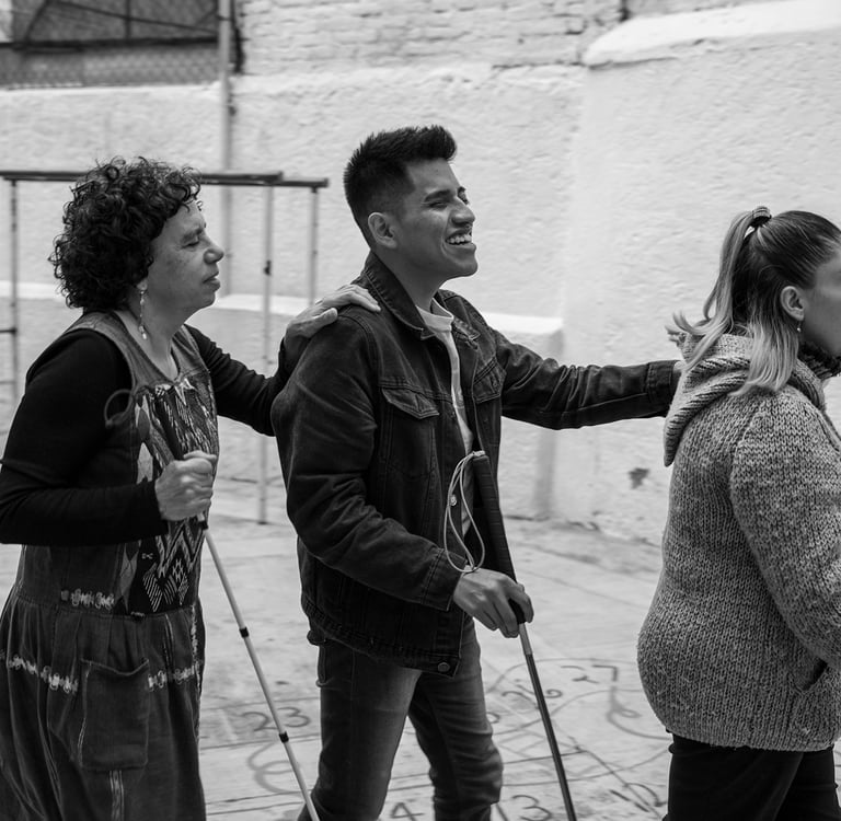 Domingo 26 de enero 2025. Quedé de verme con Maricarmen después de la hora de la comida. Esta vez no entré a su casa porque la hora apremiaba a que nos fuéramos pronto porque nos quedaban pocas horas de luz. En cuanto le avisé que ya estaba abajo esperándola no tardó en bajar con su mochila, chamarra, bastón y un amigo, que muy amablemente me saludó y estableció una conversación conmigo enterándome que dese muy joven quedó ciego…